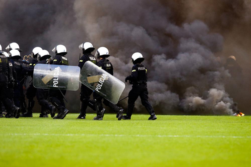 Des policiers de Poznań se servent d’un maillot du Legia comme paillasson