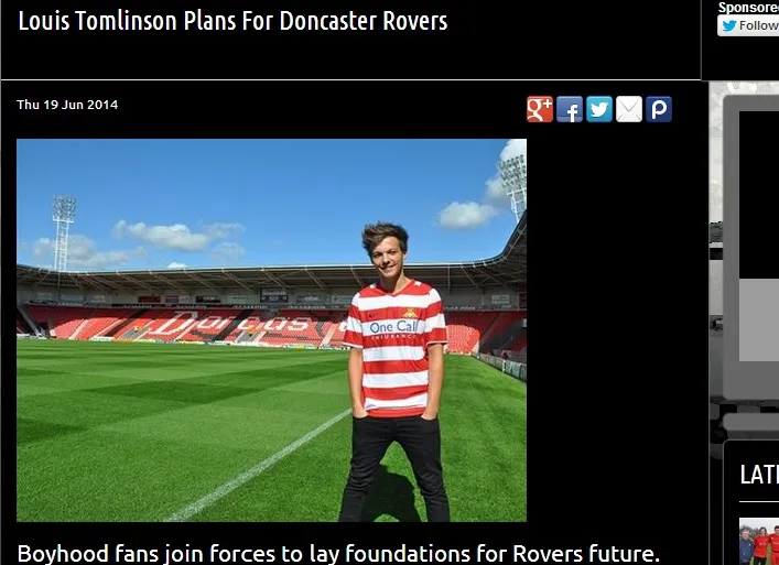 Et bien, ce rêve est devenu réalité pour Louis Tomlinson, chanteur du très populaire boys band britannique One Direction, qui est devenu aujourd’hui actionnaire principal du club de sa ville natale, Doncaster, qui évolue en 3e division anglaise. L’artiste de 21 ans, associé à John Ryan, homme d’affaires et ancien président des Rovers, n’a pas souhaité communiqué le montant de la transaction.