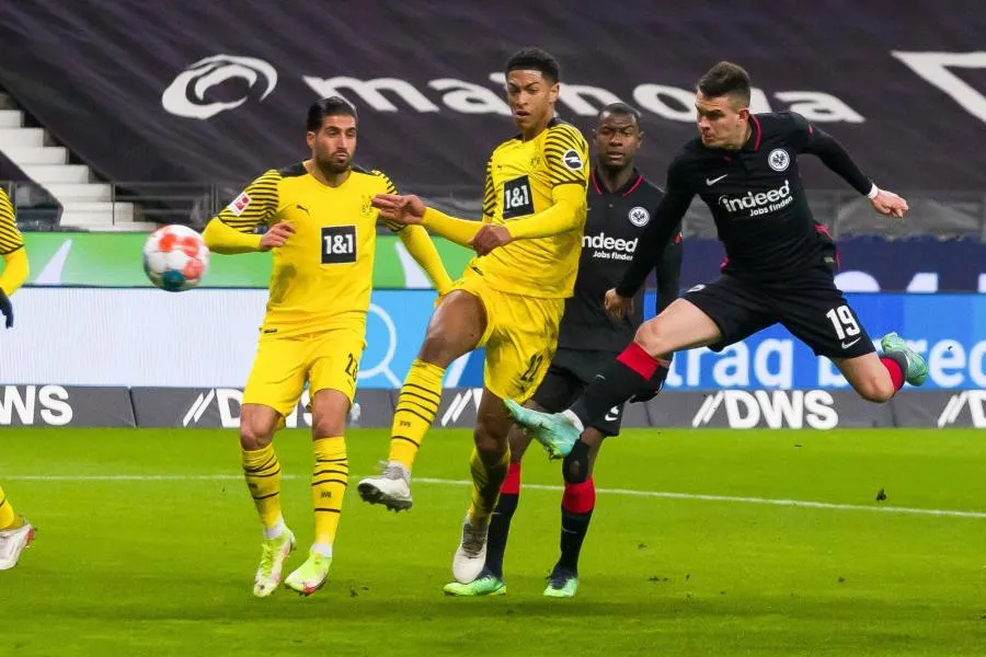 Buts : Borré (16e, 24e) pour l’Eintract // Hazard (71e), Bellingham (87e) et Dahoud (89e) pour Dortmund