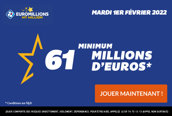 EuroMillions mardi 1er février 2022 : 61 millions d’€ à gagner !