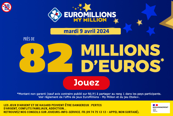 EuroMillions mardi 9 avril 2024 : 82 millions d’euros à gagner !