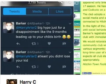 After Alfie Barker horrible comments about Harry Arter child Hitchin Town terminate his contract right so. Want none of this in football pic.twitter.com/3ZcYkukHsq