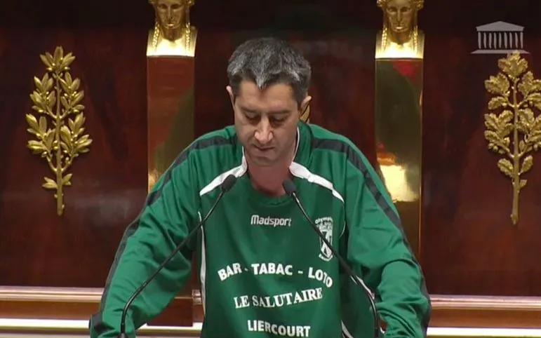 Le réalisateur de Merci Patron ! a enlevé son pull dans l’hémicycle pour dévoiler un maillot de l’Olympique Eaucourt, club de la commune d’Eaucourt-sur-Somme. Au cours de son intervention, Ruffin a loué le travail des bénévoles « qui lavent, plient et rangent les maillots pour pas un rond » . L’homme politique de 42 ans n’en est pas à son coup d’essai contre la puissance financière des grands clubs, il avait notamment co-écrit Comment ils nous ont volé le football, livre dans lequel il s’attaquait à la relation entre le pognon et le ballon rond.