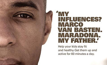L’attaquant français a été appelé avec Frank Lampard par le ministère de la santé anglais pour participer à une campagne de sensibilisation, « Change4life ». Titi apparaît à l’affiche avec en slogan « Mes influences, Marco Van Basten. Maradona, mon père« .