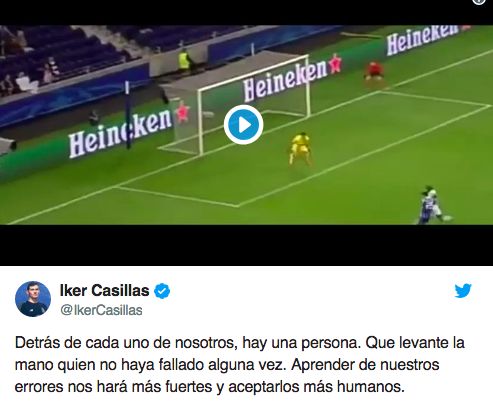 Sans doute peiné par la situation du portier allemand, Iker Casillas a décidé de porter secours à son homologue. Dans une vidéo postée sur son compte Twitter, l’Espagnol a compilé ses pires maladresses en carrière. Celle-ci est accompagnée du hashtag « #Moiaussijaifaituneerreur » . L’ancien capitaine du Real Madrid s’était déjà emporté lundi, demandant à ce qu’on « laisse le gamin tranquille » .