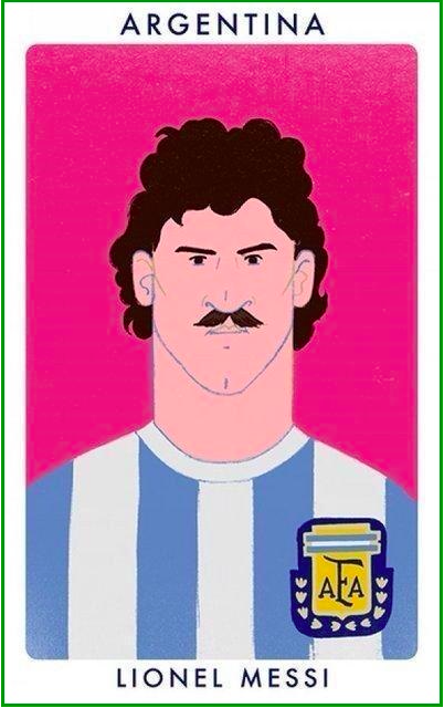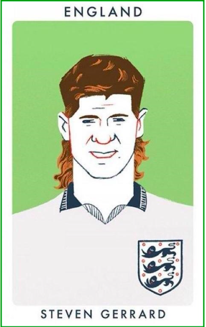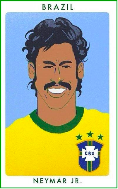 L’artiste a ainsi représenté Lionel Messi et Cristiano Ronaldo affublés d’une moustache, l’une en accent circonflexe, l’autre en forme de peigne. Il a par ailleurs dessiné un Steven Gerrard arborant une nuque longue complètement Waddle et Neymar rappelant vaguement le pilote de F1 Clay Regazzoni. Drôle.
