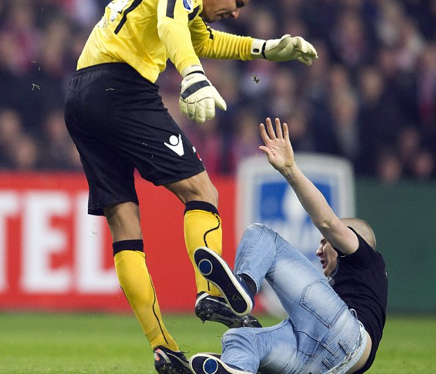 Trente ans. C’est l’incroyable suspension que vient de receoir le supporter qui avait tenté d’agresser le gardien de l’AZ Alkmaar, lors du match de Coupe des Pays-Bas disputé la semaine dernière sur la pelouse de l’Ajax.A la 37ème minute de cette rencontre, Esteban Alvarado Brown est entré sur la pelouse, et s’est jeté sur le portier de l’AZ, qui a immédiatement réagi en lui mettant des mandales. L’arbitre, qui n’a pas tout compris, a exclu le gardien, entraînant la suspension du match par les joueurs de l’AZ eux-mêmes.Mais la Justice a finalement tout remis dans l’ordre. Le gardien ne sera pas suspendu (son carton rouge est annulé) tandis que le supporter ne pourra plus pénétrer dans une enceinte sportive lors des trente prochaines années. Il pourra donc retourner au stade en 2041. A cette époque là, on pourra certainement aller au stade virtuellement à partir de son salon grâce à des lunettes bioniques.
