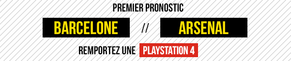 Les 1/8es de finale de Champions League se referment ce mercredi avec 2 superbes affiches, Barça-Arsenal et Bayern-Juve. Si vous avez votre idée sur l'issue de ces matchs, viendez gagner une PS4, une Tablette, une Enceinte, ou encore plus de 1000€ de Paris gratuits sur les matchs de cette journée. Et ne vous inquiétez pas si vous n'êtes pas encore inscrit à la Joa League, tous ces cadeaux sont à gagner sur les pronostics de ces 2 matchs uniquement !