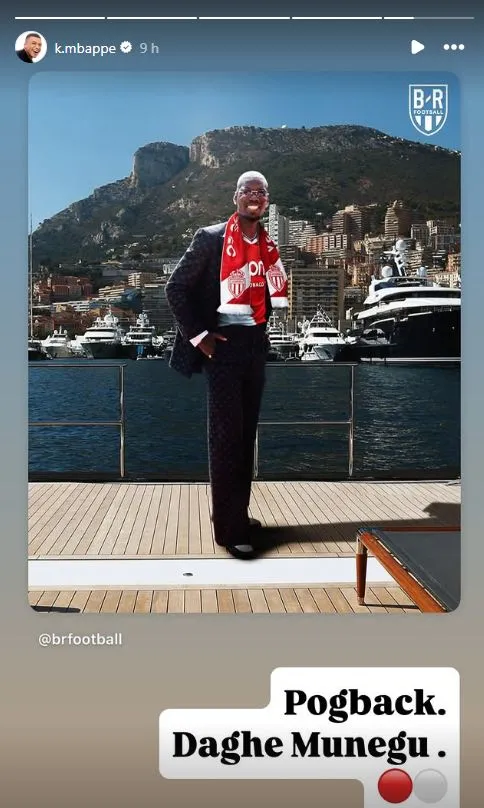 Alors que Paul Pogba est sur le point de signer avec l’AS Monaco et d’effectuer son retour à la compétition après 18 mois de suspension, Kylian Mbappé a pris les devants pour saluer son transfert. L’attaquant du Real Madrid a publié cette nuit, dans une story sur Instagram, un montage photo montrant son ancien collègue de l’équipe de France vêtu d’une écharpe de l’AS Monaco, posant devant l’emblématique rocher, assorti des slogans « Pogback » et « Dague Munegu » (Allez Monaco, en VF).