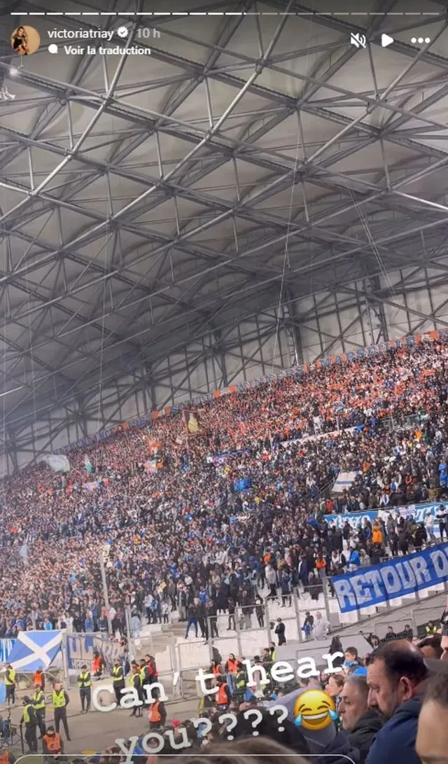 Une rencontre à laquelle a également assisté sa femme, Victoria Triay, présente dans les tribunes du Vélodrome. Laquelle a même chambré les supporters phocéens, publiant sur Instagram une photo du virage sud, accompagnée du message suivant : « Je ne vous entends pas ? »