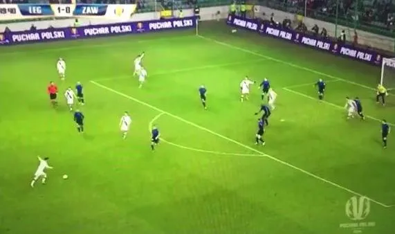 Nemanja Nikolić s’est fait remarquer ce mercredi à l’occasion de la rencontre comptant pour les demi-finales de Coupe de Pologne entre son Legia Varsovie et le Zawisza Bydgoszcz. Si le score final est de 4-0, le tableau d’affichage n’indiquait encore qu’un but à la 49e. Le Hongrois a donc décidé qu’il fallait réagir en envoyant une mine dans le but adverse. Positionné à bien dix mètres de la surface de réparation, il a repris le ballon en un temps, à la suite d’une passe, et l’a propulsé sur le bas de la barre transversale. Le gardien n’a rien pu faire.
