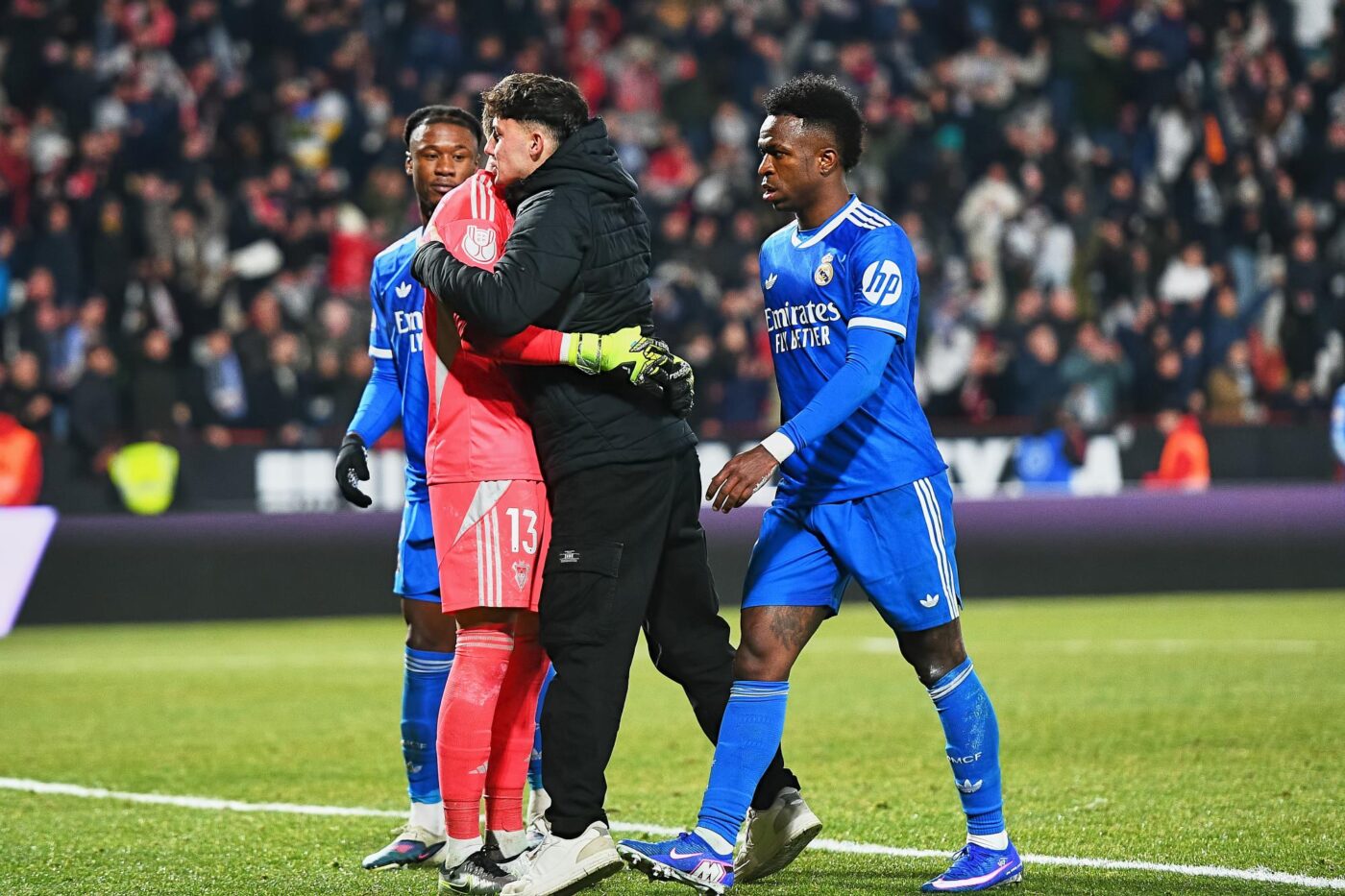 Il n’y a pas qu’Arbeloa qui a passé une soirée difficile à Albacete. Si le Real Madrid s’est fait éliminer de Coupe du Roi en huitièmes de finale par le pensionnaire de D2 espagnole (3-2), d’autres faits ont terni la soirée des Madrilènes, et plus particulièrement celle de Vinícius. Réconforté quant à sa performance par son nouvel entraîneur à l’issue de la rencontre, l’international brésilien a été la cible de chants racistes juste avant la rencontre, rapportés notamment par AS.
