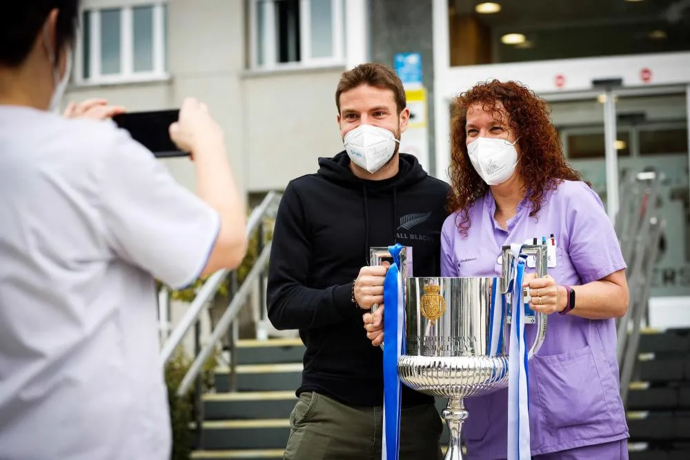 Vainqueur de la finale 100% basque de la Copa del Rey version 2020, la Real Sociedad a tenu à remercier le personnel soignant. Ce matin, le président Jokin Aperribay, l’entraîneur Imanol Alguacil et les deux capitaines Asier Illarramendi et Mikel Oyarzabal se sont rendus à l’hôpital Donostia de San Sebastián avec le trophée, rapporte El Diario Vasco. Les Txuri-Urdin ont remis le Graal à des membres de l’hôpital qui ont pu le soulever dans le ciel, en guise de reconnaissance envers tous ceux qui luttent pour freiner la pandémie.