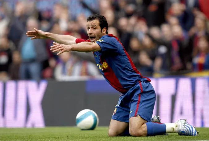 Premier joueur français à réussir au Barça après un beau wagon de flops (Déhu, Christanval, Dutruel…), Ludovic Giuly est résumé par certains en Catalogne à une anecdote : lorsqu’il est arrivé à l’entraînement et qu’il a découvert un petit prodige, un certain Lionel Messi, qui jouait à son poste.