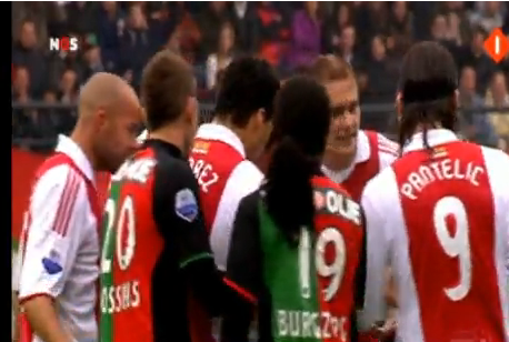 Avec un point de retard sur le leader Twente, l’Ajax fait son match et l’emporte 4-1. Menant déjà 1-0 à la 15e minute par l’inévitable Suarez, l’Ajax survole les débats. A la 33e minute, sur une balle en profondeur pour Suarez, Patrick Pothuizen, défenseur de Nimègue complètement à la ramasse, volleye le cuir pour éviter le deuxième but.