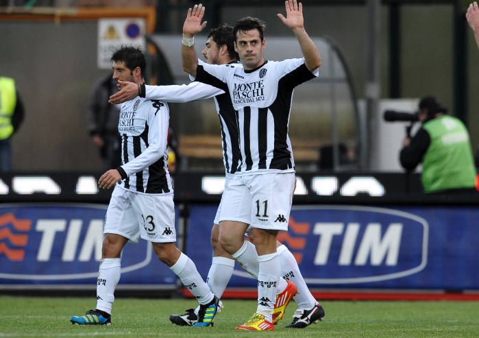 De 2005 à 2008, il a porté le maillot azzurro et grandement participé aux remontées du club de la Serie C1 vers l’élite. Après 128 matchs et 44 buts, il a rejoint Sienne en quête de temps de jeu. Ses deux dernières saisons sont plus que satisfaisantes. Après avoir claqué 18 buts pour permettre aux Toscans de remonter en Serie A, il a formé un superbe duo avec Matteo Destro l’an passé, ses réalisations contribuant au maintien du club.