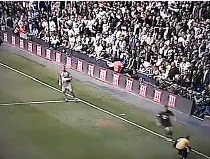 L’arbitre siffle une balle à terre et les Spurs peuvent se replacer. Well done boy.