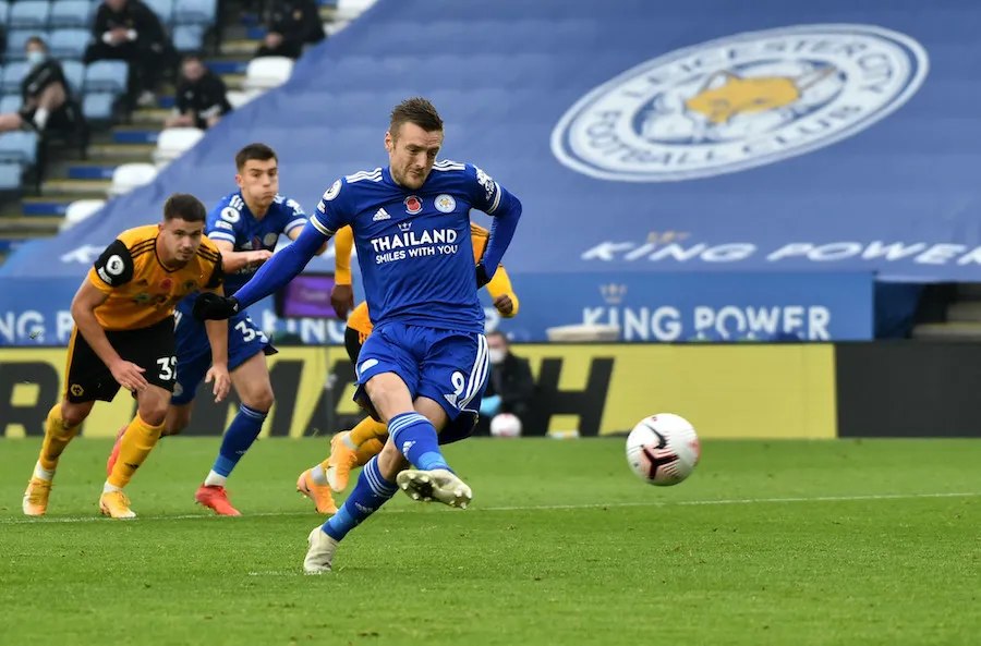 En cas de victoire, la troupe de Brendan Rodgers pouvait provisoirement prendre la tête de la Premier League. Message reçu : les Foxes montrent les crocs d’entrée dans un duel de canidés avec les Wolves de Nuno Espirito Santo. La domination n’accouche cependant d’aucune occasion et c’est donc la VAR qui s’en occupe. À bout portant, Kilman contre un centre de Praet de la main et, comme à son habitude, Anthony Taylor indique le point de penalty. Vardy prend le contrepied de Patricio pour le transformer facilement (15e).