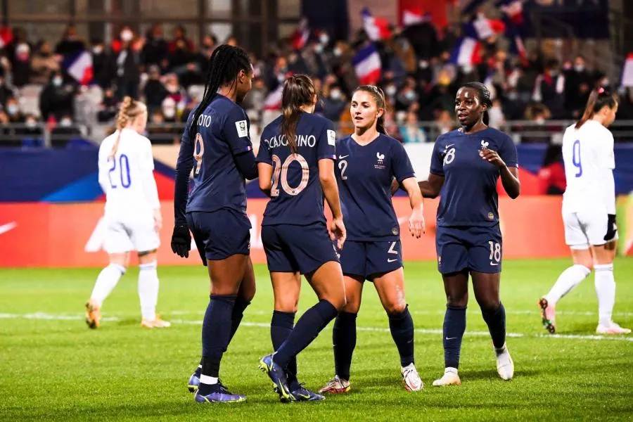 France féminine (4-3-3) : Peyraud-Magnin – Périsset, Cissoko, Tounkara (Mbock, 79e), Bacha – Bilbault (Matéo, 60e), Toletti (Geyoro, 60e), Dali – Cascarino (Baltimore, 46e), Katoto (Gauvin, 46e), Asseyi. Sélectionneuse : Corinne Diacre.