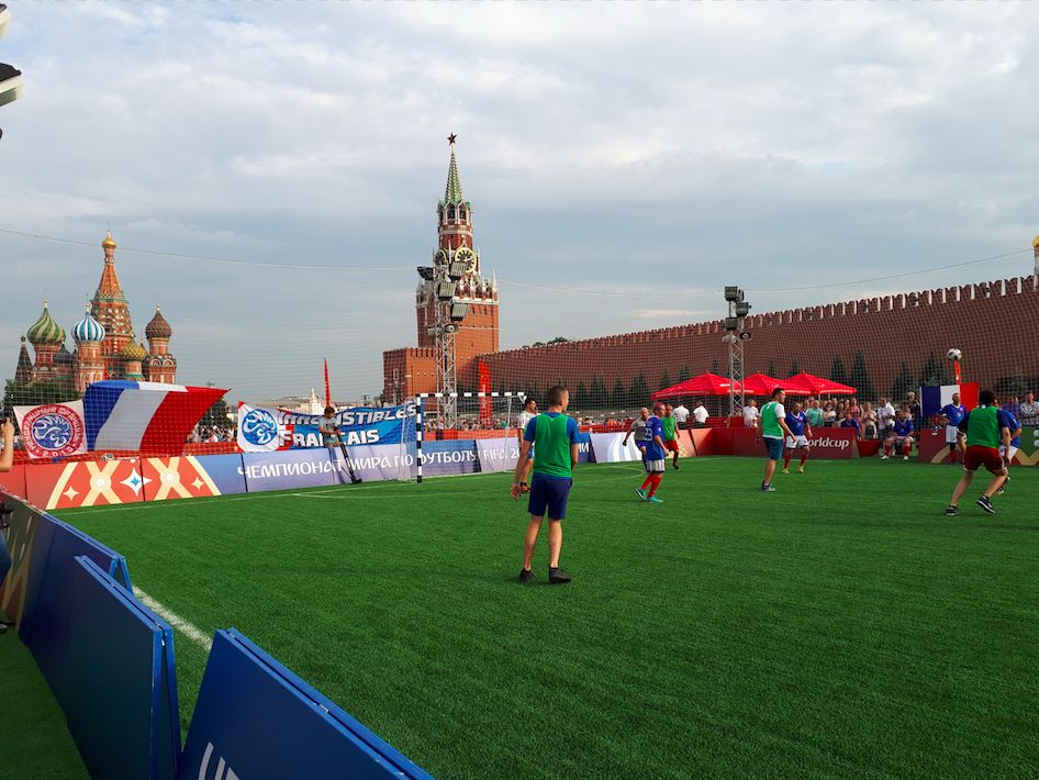 Ce samedi, sur le terrain de 5 contre 5 installé au beau milieu de la place Rouge, à Moscou, le match entre les supporters croates et français s’est soldé par une victoire de la Croatie, sur le même score que le huitième de finale France-Argentine : 4-3.