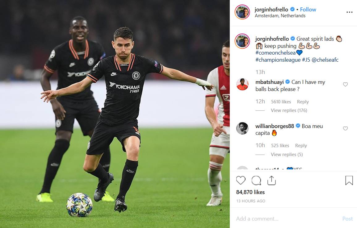 Mercredi soir, Chelsea s’est imposé 1-0 à Amsterdam face à l’Ajax grâce à une réussite de Michy Batshuayi. Au moment de célébrer, Jorginho a félicité son pote belge d’une façon pour le moins singulière : en le gratifiant d’une tentative de castration des plus convaincantes.
