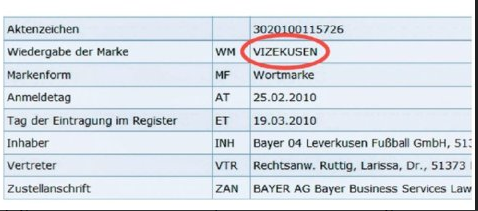 De quoi donner une idée aux stratèges marketing du club. L’appellation « Vizekusen » est désormais brevetée, achetée directement par le Bayer et orientera la future campagne de communication du club, soucieuse de tourner l’image du club de looser à… looser au sens de l’humour. La même stratégie avait déjà été adoptée auparavant, le club ayant acheté le nom « Pillenklub » (club de pillules) ou « Werkself » (club d’usine).