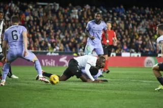 Et si ce samedi 4 avril venait de tout changer, en haut de la Liga ? Il faudra attendre encore un peu pour en connaître les conséquences définitives, mais c’est une très mauvaise opération qu’a commise le Real Madrid sur sa pelouse en concédant un revers face à Valence (1-2). Les Madrilènes sont passés par plusieurs états, à commencer par la joie d’obtenir un penalty (récolté par Kylian Mbappé) avant de passer par la frustration au moment de voir Vinícius rater – encore – sa tentative face au but. C’est même l’énervement qui a gagné les rangs du Santiago-Bernabéu lorsque Mouctar Diakhaby a, dans la foulée, ouvert le score sur corner (0-1, 15e).