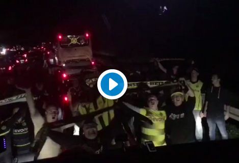 Alors qu’ils étaient pris dans des bouchons, à proximité du bus de leur équipe, quelque dix supporters se sont lancés au milieu de la quatre-voies dans leurs chants habituels en l’honneur de Peter Bosz et ses joueurs, dont le mythique You’ll Never Walk Alone bien sûr.
