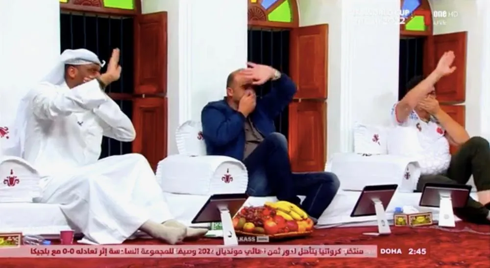 L’Allemagne se remet encore à peine de son élimination au Mondial après sa défaite contre le Costa Rica. C’est la télévision du Qatar qui s’est régalée de cette sortie prématurée : pour fêter l’événement, toutes les personnes présentes sur le plateau d’Al-Kass One – chaîne locale qatarienne – se sont caché la bouche avec leur main, mimant également un signe d’au-revoir.