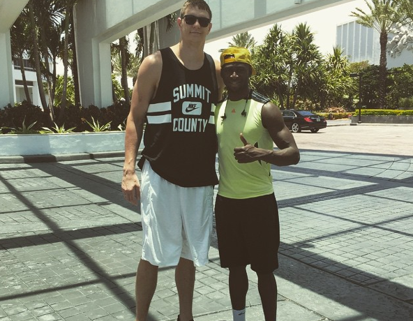 Cette fois, c’est Eliaquim Mangala, l’homme qui marche en ville avec le statut de défenseur le plus cher du monde, qui a posté une photo de ses congés sur son compte Instagram. Petite originalité, alors que la plupart de ses confrères s’affichent avec d’autres footballeurs ou avec des popstars, Mangala a pris la pose aux côtés de Timofeï Mozgov, le pivot des Cleveland Cavaliers, qui affiche un imposant 2m16 sous la toise.