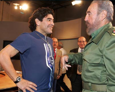 De passage au Vénézuela chez son pote Chavez, Diego a préparé le terrain d’une visite imminente à Cuba et pas seulement pour choper des cigares qui seront fumés à l’entraînement mais pour y retrouver un proche âgé, portant le survêt’ comme personne : Fidel Castro. « Dites à Fidel que je l’aime ! » , s’est exclamé El Pibe à Caracas.