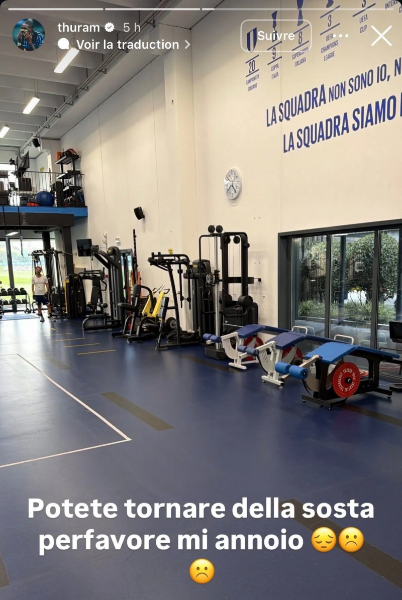 Dans sa story Instagram, le buteur de l’Inter a publié un message plein d’humour, avec une salle de gym vide, réclamant le retour de ses coéquipiers : « Vous pouvez revenir de la trêve s’il vous plaît, je m’ennuie. »