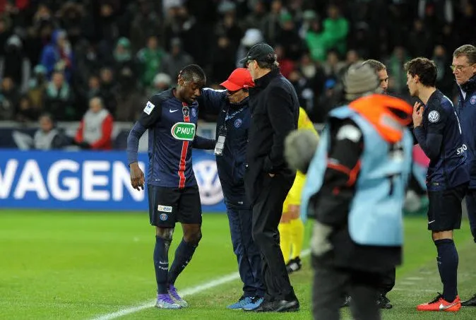 Vainqueur ce mercredi soir de Saint-Étienne en quarts de finale de Coupe de France (1-3), le Paris Saint-Germain a, sans trop de soucis, décroché son billet pour les demies. Mais en contrepartie, le club parisien a peut-être perdu un membre du trio titulaire au milieu : Blaise Matuidi. Remplacé en milieu de deuxième période par Benjamin Stambouli, l’international français semblait grimacer sur le banc. Son entraîneur, Laurent Blanc, n’a pas donné plus de détails en conférence de presse : « Il a ressenti une petite douleur derrière la cuisse, il est sorti par précaution. Quand un joueur sort, je suis toujours inquiet » , a-t-il lancé. Le milieu récupérateur pourrait manquer le huitième retour de C1 ô combien important pour le PSG.