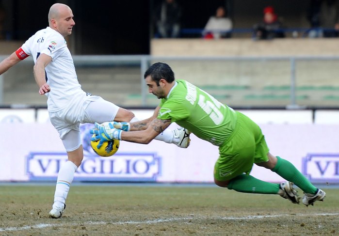 Stefano Sorrentino occupe le poste de gardien pour sa cinquième saison du côté du Chievo Vérone. Alors que son contrat touchera à son terme en 2014, le portier a déjà communiqué son choix de ne pas prolonger. Le voilà, du coup, au centre des rumeurs de l’actuel mercato. Deux prétendants se distinguent : l’Inter, qui cherche un second gardien après la blessure du numéro 2 Castellazzi, et Palerme, à la recherche d’un meilleur rempart que le décevant Ujkani. A noter que Maurizio Zamparini, friand de gardiens depuis quelque temps (Amelia, Rubinho, Sirigu, Tzorvas, Benussi, Viviano et Ujkani se sont succédés au poste de numéro 1 depuis… 2008), possède l’avantage de proposer un poste de titulaire. Âgé de 33 ans, Sorrentino est reconnu comme étant un excellent portier de Serie A, spécialiste dans l’arrêt des pénos. Il coûterait au minimum 2 millions d’euros.