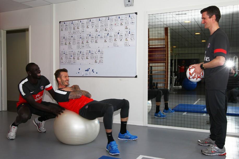 Pour son premier entraînement avec le PSG, David Beckham n’a pas perdu de temps à s’intégrer. Et passer du bon temps aux côtés de ses nouveaux partenaires.