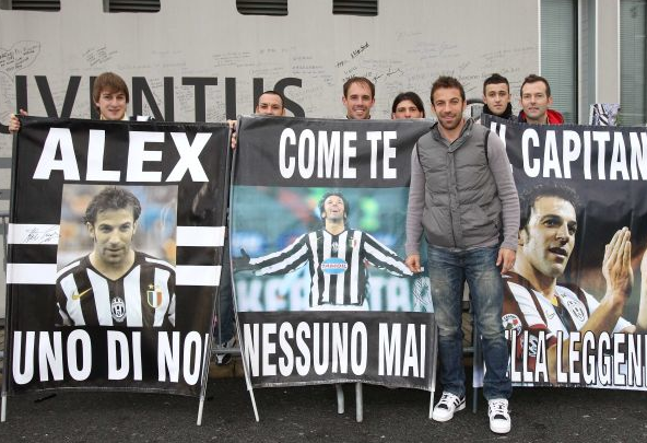 Mais il y a quelque chose que l’on ne pourra jamais enlever à Alessandro Del Piero : l’amour des tifosi. Aujourd’hui, le numero 10 bianconero a fêté ses 37 ans. Du coup, au centre sportif de Vinovo, de nombreux tifosi l’ont attendu avec des pancartes, des banderoles et des maillots.