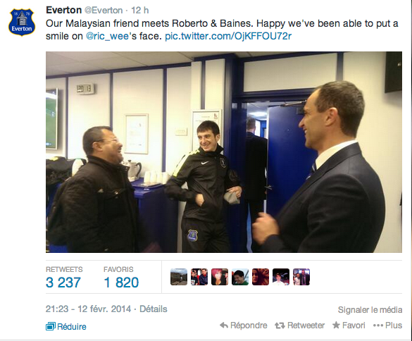 C’est ainsi, que les dirigeants l’ont invité à visiter le stade et à rencontrer Roberto Martinez et Leighton Baines, restés aux vestiaires. Classe.