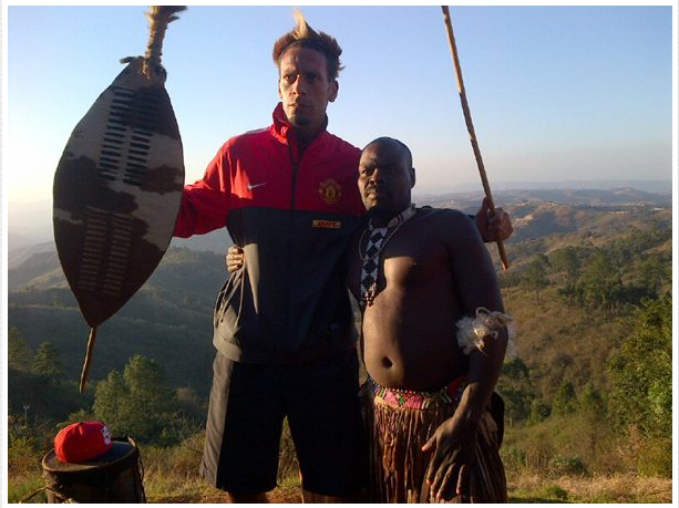 Pendant ce temps-là, Rio Ferdinand est parti à la chasse au lion avec un pote zoulou. Tout ça avec le survêt de MU bien sûr.