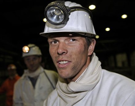 Que les supporters de Schalke 04 se rassurent, leur attaquant vedette Klaas-Jan Huntellar n’a pas décidé d’arrêter le football pour se lancer dans une carrière de mineur. L’international néerlandais a seulement fait un tour dans une mine de charbon, à Marl, près de Gelsenkirchen, aujourd’hui. Après être descendu à 1000 mètres de profondeur, l’ancien avant-centre du Real Madrid est sorti de terre tout sourire et avec la gueule noire.Le but de l’opération était, selon le club allemand, de renforcer l’esprit d’équipe et les liens avec les supporters en vue de la reprise de la Bundesliga. Heureusement pour Huntelaar et ses potes que Félix Magath est parti. Cette petite visite lui aurait sans doute donné des idées pour punir ses élèves après un mauvais match.