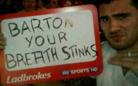 En virée dans un pub afin d’y regarder la finale des championnats du monde de fléchettes, le joueur de Norwich a dégainé son feutre Veleda et sa meilleure punchline pour fermer le bec de Barton. Résultat : « Barton, tu pues de la gueule » .