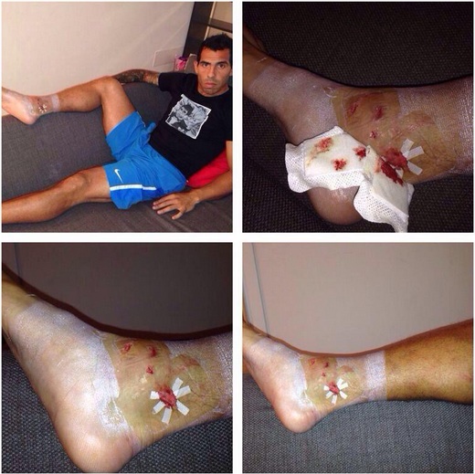 La Vieille Dame en profite donc pour faire taire les critiques qui accusent la Juventus d’être aidée par l’arbitrage. Sur son compte Twitter, l’Apache poste une photo à couper l’appétit: « Quand on gagne on est certainement aidé. Et c’est aussi pour cette raison que je suis blessé comme ça. Celui qui m’a quasiment cassé la cheville ne s’est pris qu’un jaune » .