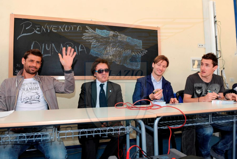 Les trois joueurs ont répondu aux questions des élèves, qui, on ne va pas se mentir, n’avaient d’yeux que pour Miro Klose. Le buteur allemand a parlé des deux derbys gagnés, de son arrivée à Rome, et a promis à un jeune garçon de lui lancer son maillot au prochain match.