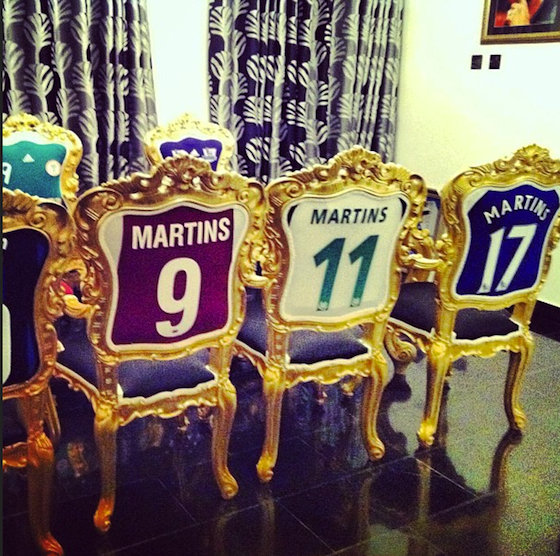 L’argent peut beaucoup mais reste inutile à l’heure de se trouver un sens du bon goût. Pire, il peut même causer quelques catastrophes, à l’image du salon d’Obafemi Martins, aujourd’hui joueur de Seattle. Des chaises au style ancien, ornées d’or, incrustées de ses différents maillots, voilà le mix qu’a tenté le Nigérian. Outre le rendu visuel, on sent toute la modestie du bonhomme.