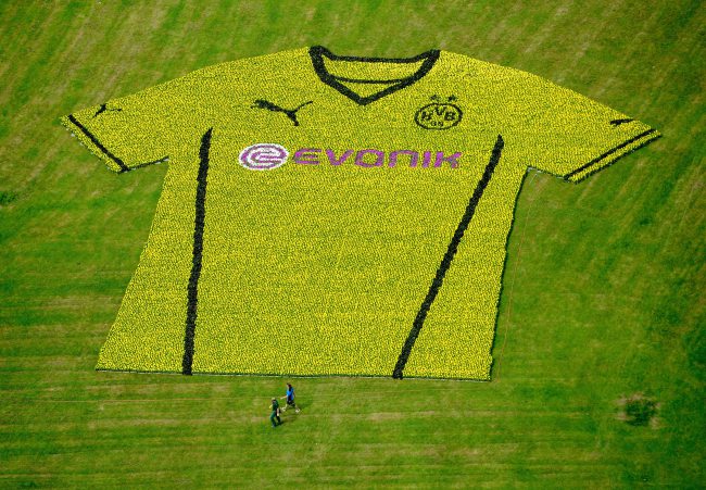 Le club le plus hype du moment a choisi de se démarquer en présentant son maillot home 2013-14… à l’aide de fleurs ! 80 645 fleurs exactement – comme le nombre de sièges dans les tribunes de son antre – plantées sur une pelouse à proximité du Westfalenstadion.