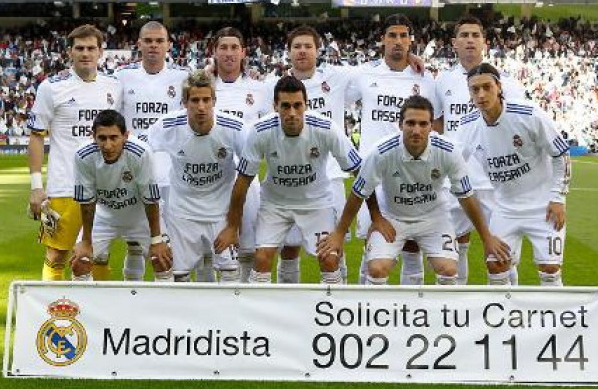 Juste avant le début de la rencontre face à l’Osasuna, ce midi, les joueurs madrilènes ont endossé un maillot spécial « Forza Cassano » , en soutien à l’ancien joueur du Real Madrid, opéré cette semaine du coeur.