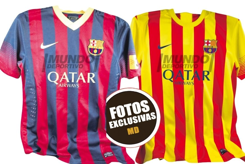 Dans son édition quotidienne, le Mundo Deportivo révèle – ce qui devrait être – les maillots de la saison 2013/2014 du Real Madrid et FC Barcelone. Alors ? Bah déjà, la certitude réside dans le fait que les deux clubs changeront de sponsor : là où le Barça passera du Qatar Foundation à Qatar Airways, le Real lâchera son Bwin pour Fly Emirates.