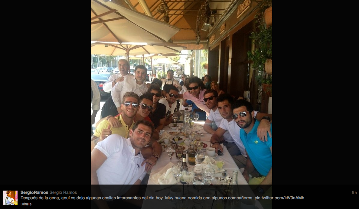 Lunettes de soleil et bonne bouffe en terrasse. Si on se fie aux apparences, les Madrilènes sont encore en vacances. Mais les coéquipiers d’Iker Casillas et de Sergio Ramos sont en plein stage de préparation à Los Angeles, où ils se permettent quand même quelques moments de détente. Au plus grand bonheur des serveurs locaux, tout heureux de taper la pose avec les Merengues, qui remettront le bleu de chauffe dès aujourd’hui, pour affronter les Galaxy de David Beckham.