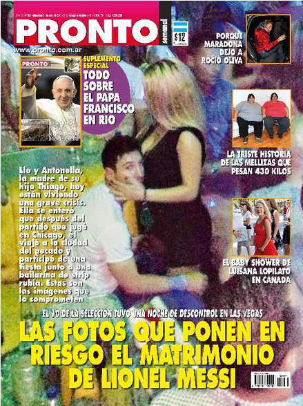 Après les accusations de fraude fiscale, la démission de Vilanova et la superbe coupe des Confédérations de Neymar, le quadruple Ballon d’or a de nouveau l’occasion de tirer la gueule. Le magazine à scandales Pronto l’a en effet épinglé (ou un vrai bon sosie de la Pulga) en Une aux bras d’une sulfureuse call girl lors de son passage à Las Vegas début juillet.