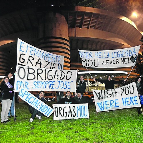 La nuit dernière, une centaine de fans de l’Inter se sont rendus à San Siro où José Mourinho tenait une conférence de presse avant le match retour de C1 de ce soir entre le Real Madrid et le Milan AC.