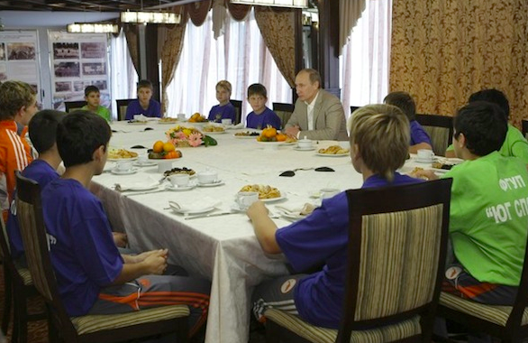 Grâce à qui ? Citons Vladimir Poutine. L’homme le plus viril de Russie a passé avec succès son diplôme d’entraineur, Niveau II catégorie Poussin-Benjamin. Son sens aigu de la tactique et de la préparation physique ont séduit les hautes instances de la FIFA. Et les mômes ?